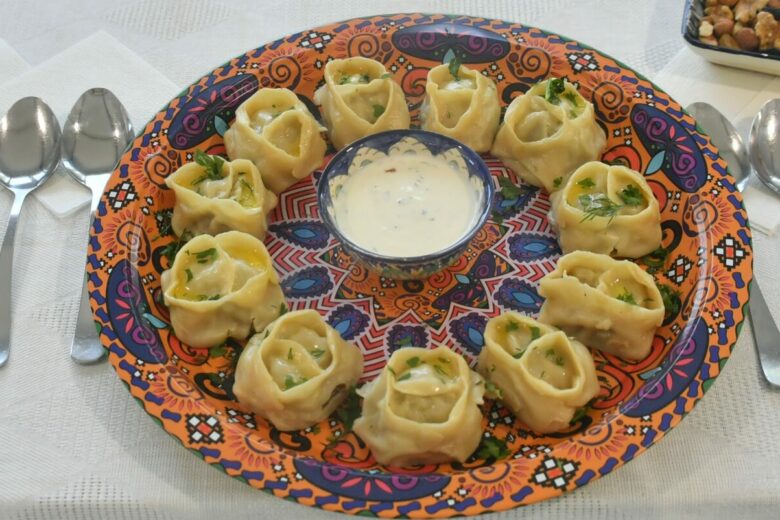 Через 40 минут раскатываем тесто в тонкий пласт, раскладываем начинку и заворачиваем в плотный рулет, закрепляя край. В чашу мультиварки наливаем достаточное количество воды, кладем лавровый лист и погружаем «Ханум». Выставляем программу варка и готовим ленивый мант около 50 минут.