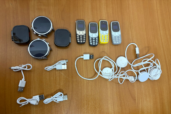 В ходе досмотра из коробки были изъяты четыре сотовых телефона и зарядные устройства к ним, а также смарт-часы в количестве четырёх штук – тоже с зарядными устройствами.