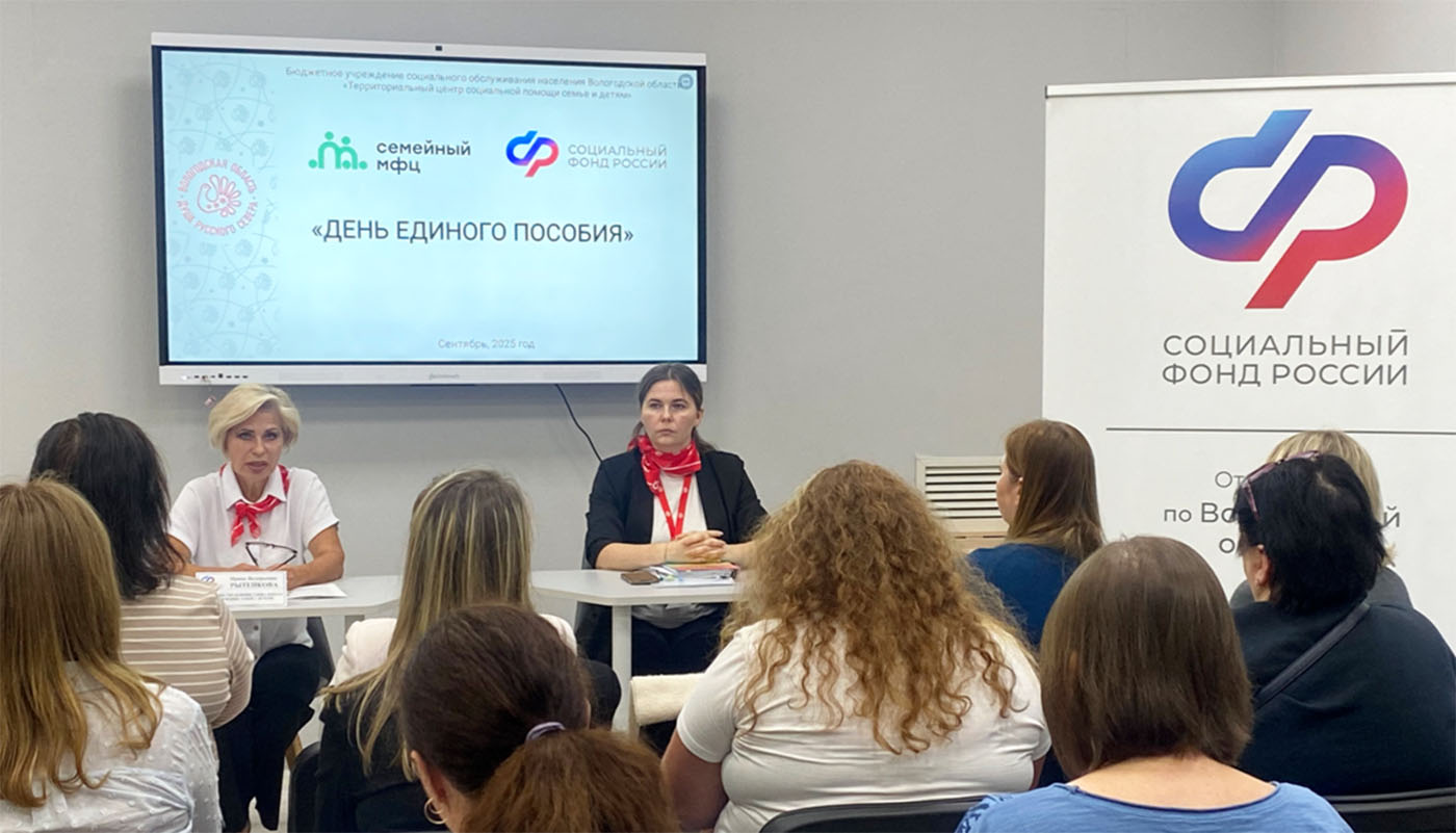 18 сентября отделение Социального фонда России по Вологодской области провело День единого пособия. В рамках мероприятия состоялся приём вологжан, посвящённый вопросам назначения пособий семьям с детьми.