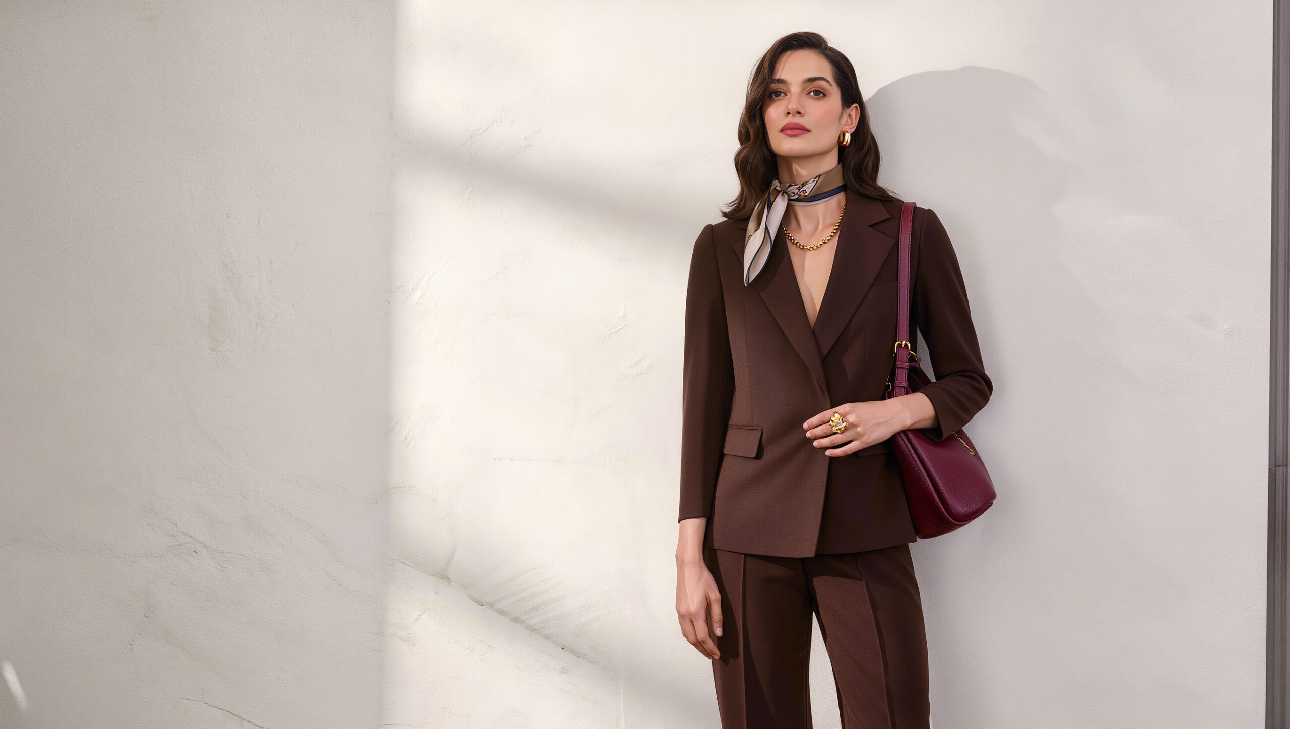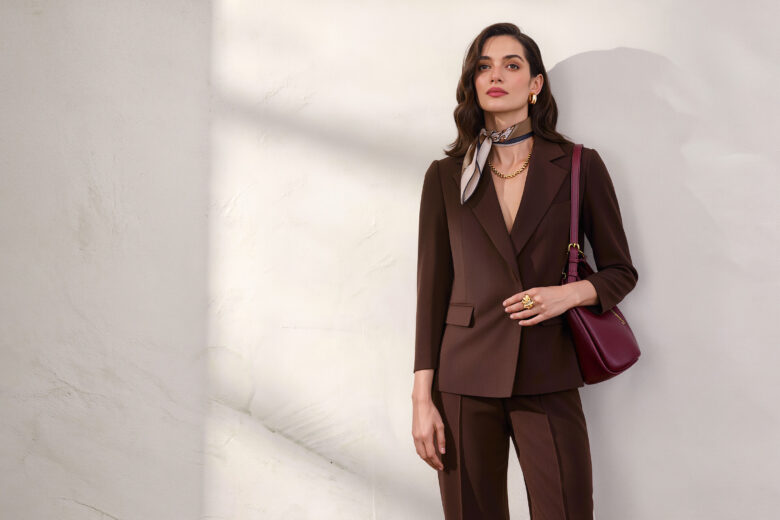Черный цвет стройнит, но он банален. Если вы хотите освежить гардероб, то не бойтесь выбрать шоколадный оттенок, который также считается классическим и элегантным. Брючный костюм с приталенным жакетом подойдет девушкам с любой фигурой. Это простой и стильный вариант для рабочих будней. Жакет и брюки можно носить отдельно, например с джинсами или белой футболкой, легкой рубашкой. Полупрозрачная тоже подойдет.