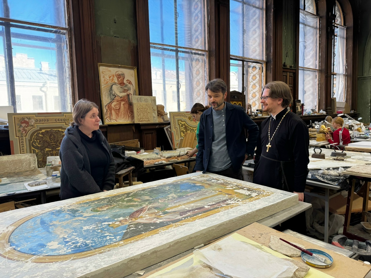 Проект получил название «Под покровом святого Димитрия Прилуцкого». Накануне в Санкт-Петербургской государственной художественно-промышленной академии имени А.Л. Штиглица прошла встреча по вопросу организации реставрационных работ в храмах Успения Богородицы и преподобного Димитрия Прилуцкого на Наволоке в Вологде.