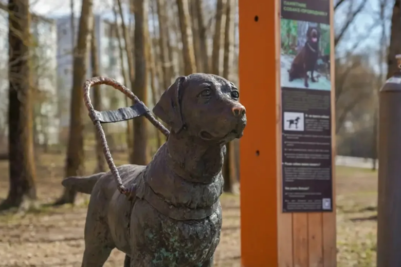 Напомним, памятник-собаке-поводырю установлен в зоне отдыха минувшим летом. Прототипом стал пёс Люкс, живший у незрячей вологжанки Натальи Бахваловой.