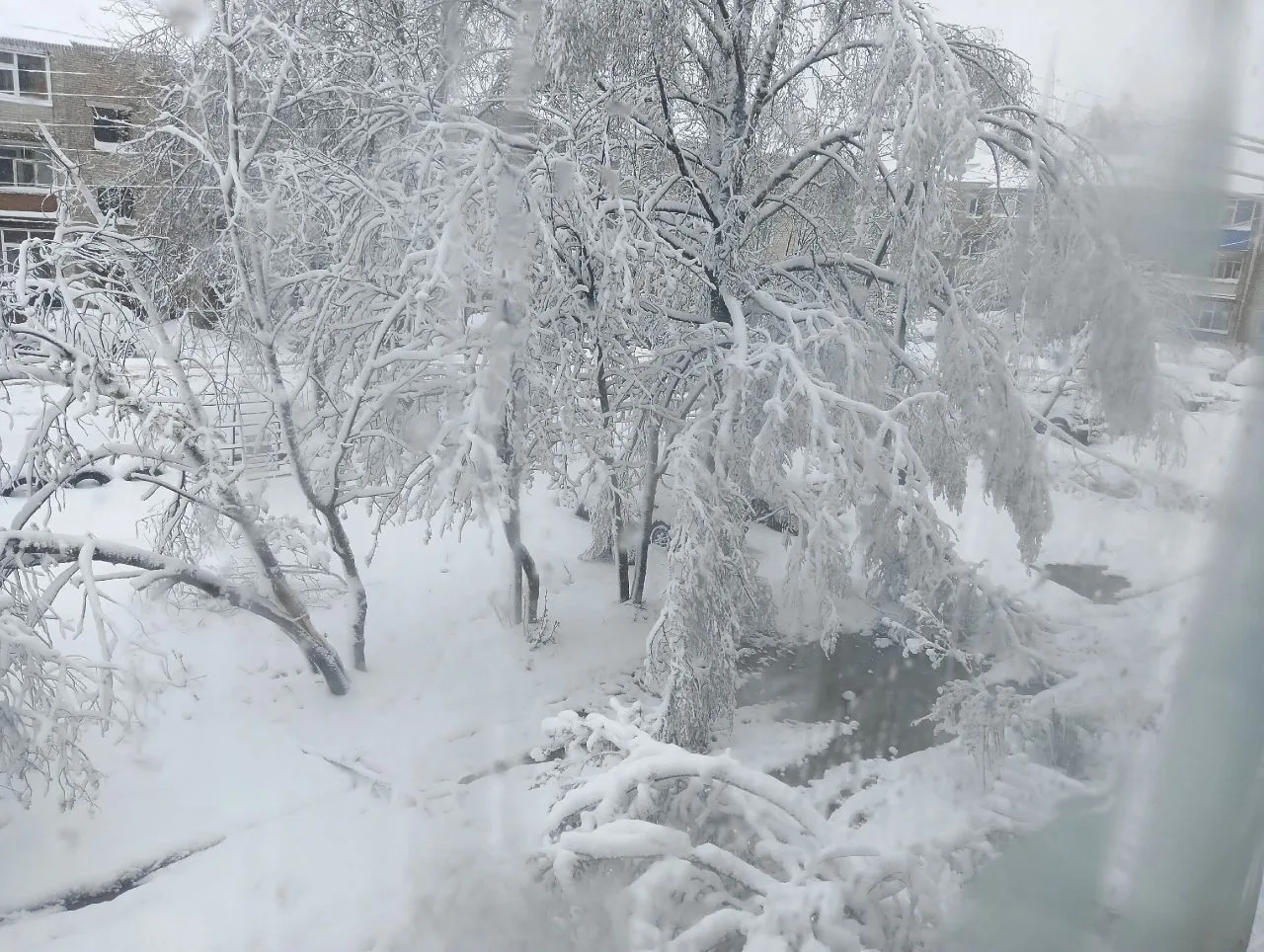 Особенно пострадала западная часть региона. Сильный снегопад и порывистый ветер начались еще днём 27 апреля.