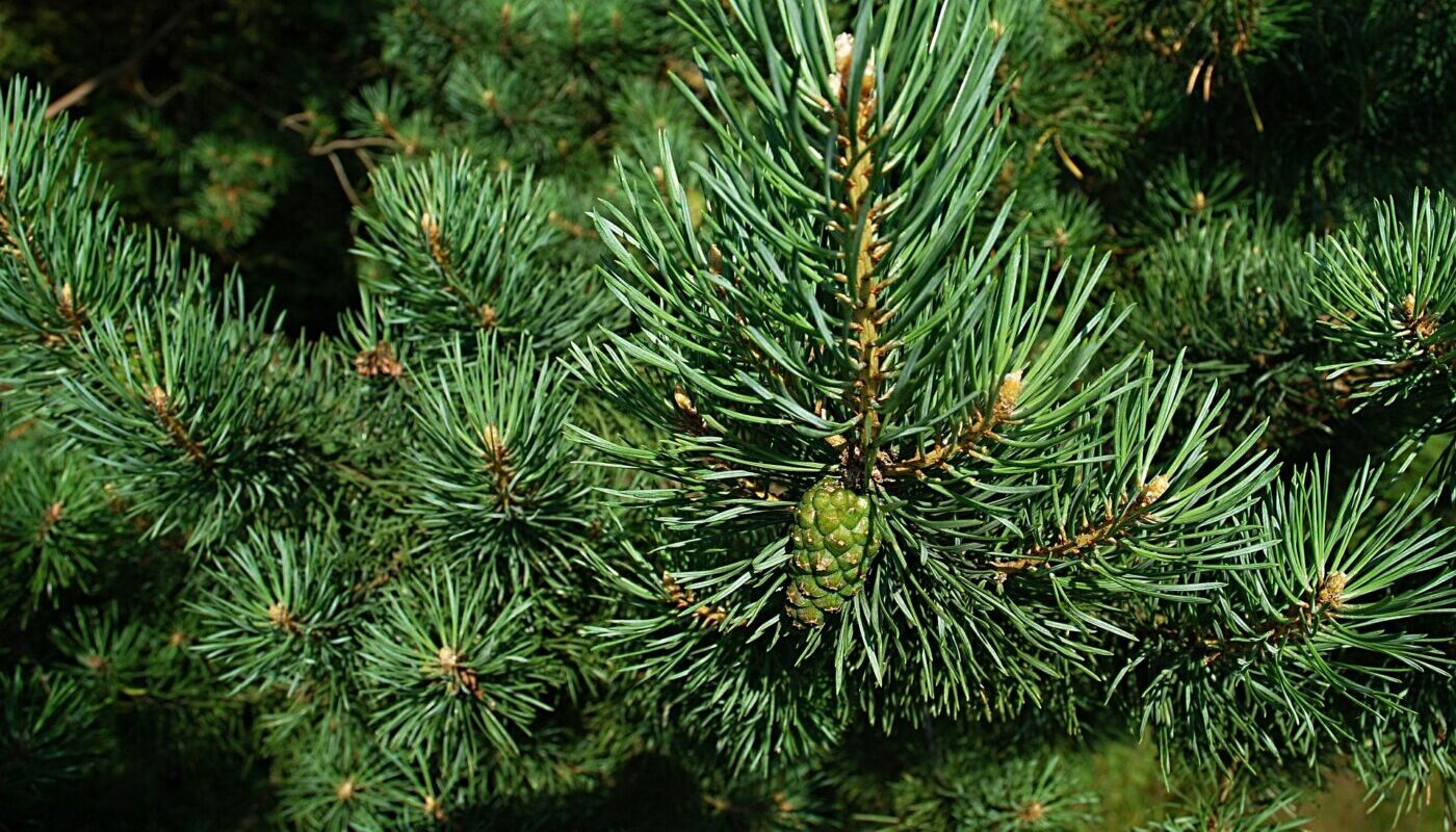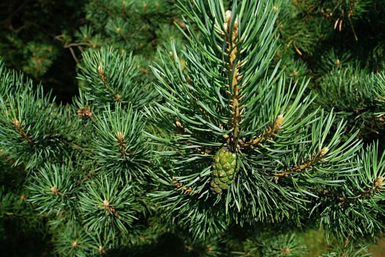 Еще одно карликовое многолетнее хвойное растение, которое хорошо переносит морозные зимы и выдерживает понижение температуры до -40 градусов. Сосна хорошо поддается стрижке и очень медленно растет. За один год прирост ветвей составляет не более 10 см. Предпочитает солнечные места, но может расти и в полутени. Дерево обладает шаровидной формой и слегка голубоватой хвоей.